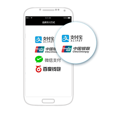 中国银行服务,为iOS/Android原生/H5 App提供支付解决方案:支持微信支付、支付宝支付、银联手机支付、百度钱包等。